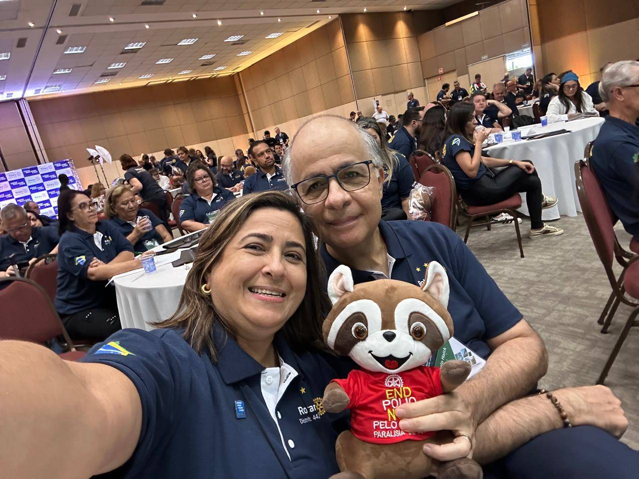 Nossa Presidente Eleita Maria Silvia Passos Martins Haick participou nesse ultimo final de semana do PETS - Treinamento para Presidente Eleitos 2025-2026. Onde foi apresentado o nosso mascote da Campanha Pólio o guaxinim Percy.