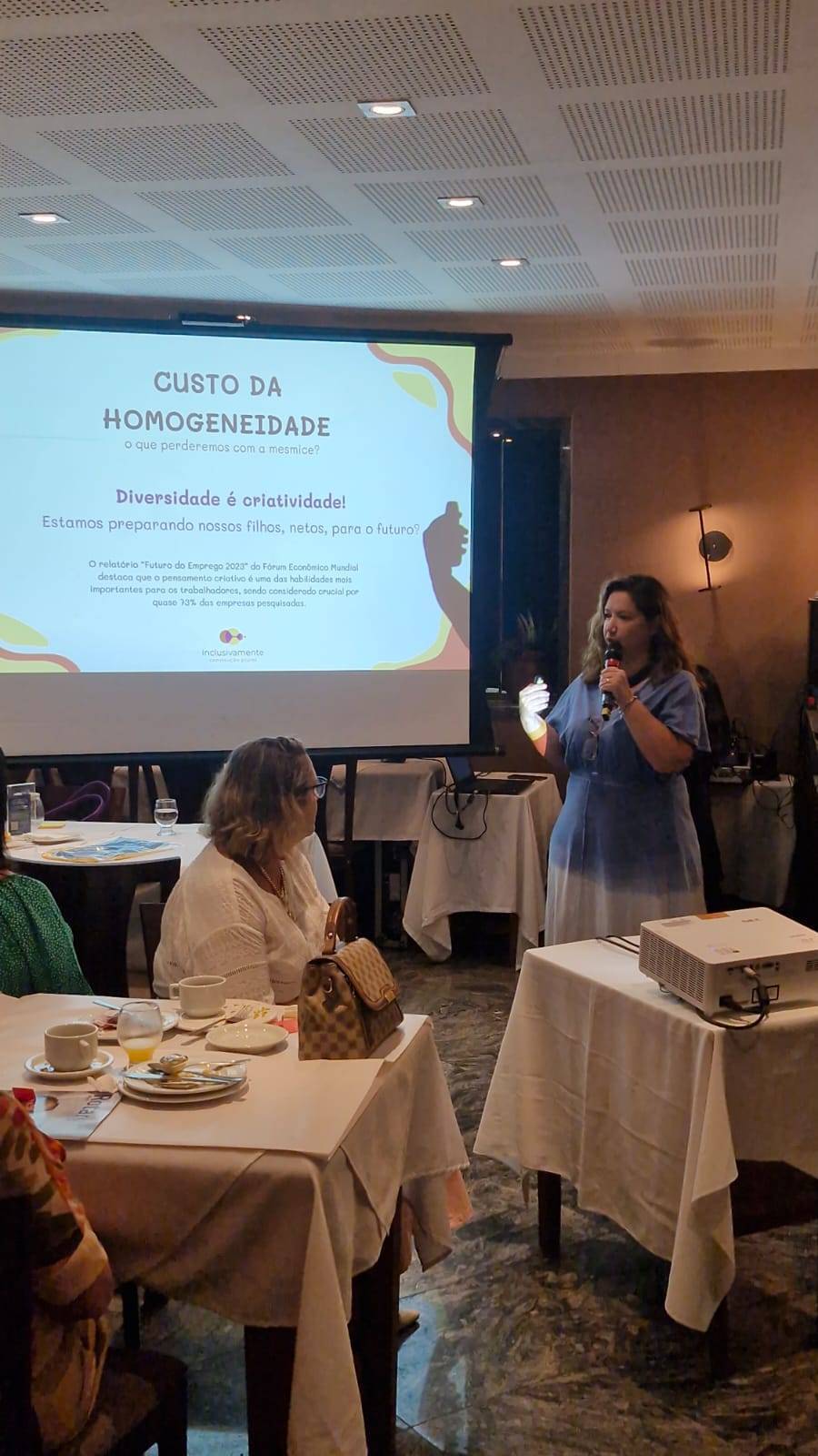 Nesta manhã, tivemos o prazer de contar com uma reflexão muito especial alusiva ao Dia das mães. Nossa convidada foi VIVI INCLUSIVAMENTE, que abordou temas sobre nossa potência como mulheres e mães dentro de um cenário mais inclusivo em relação ao mundo atual que vivemos! Para a apresentação da Vivi, convido a minha primeira vice-presidente Márcia Atik, que a convidou para esse bate-papo de hoje. Vivi Paiva Reis é educadora criativa, especialista em Diversidade e Inclusão, fundadora da INCLUSIVAMENTE e mãe de 2 adolescentes, João Pedro e Maria Clara. Sua vivência com o “maternar atípico” e experiência como educadora, mostra caminhos possíveis para estourarmos as bolhas, repensarmos nossas atitudes, com afeto e leveza.
