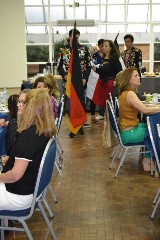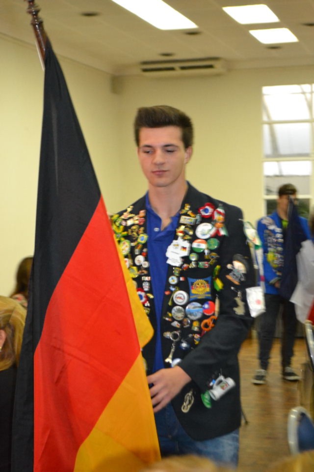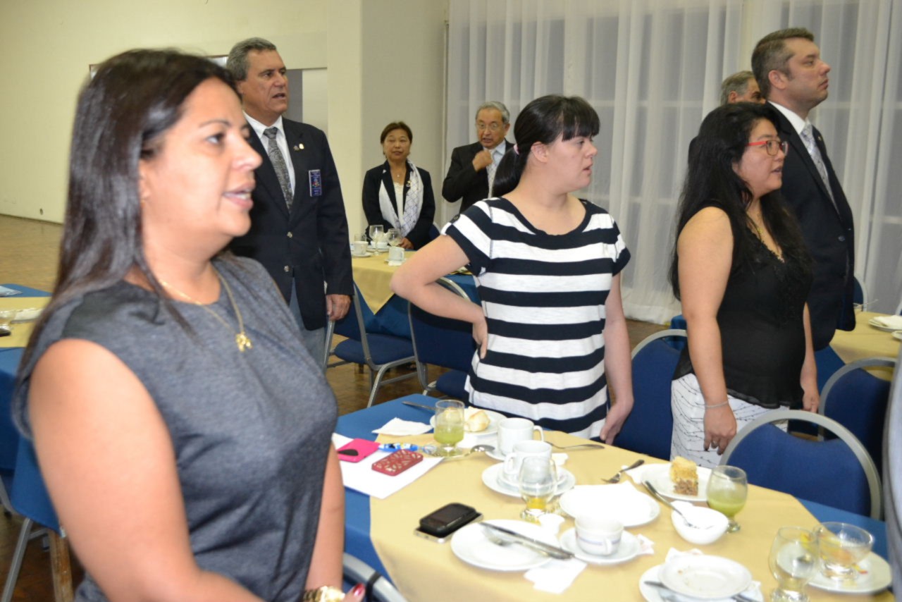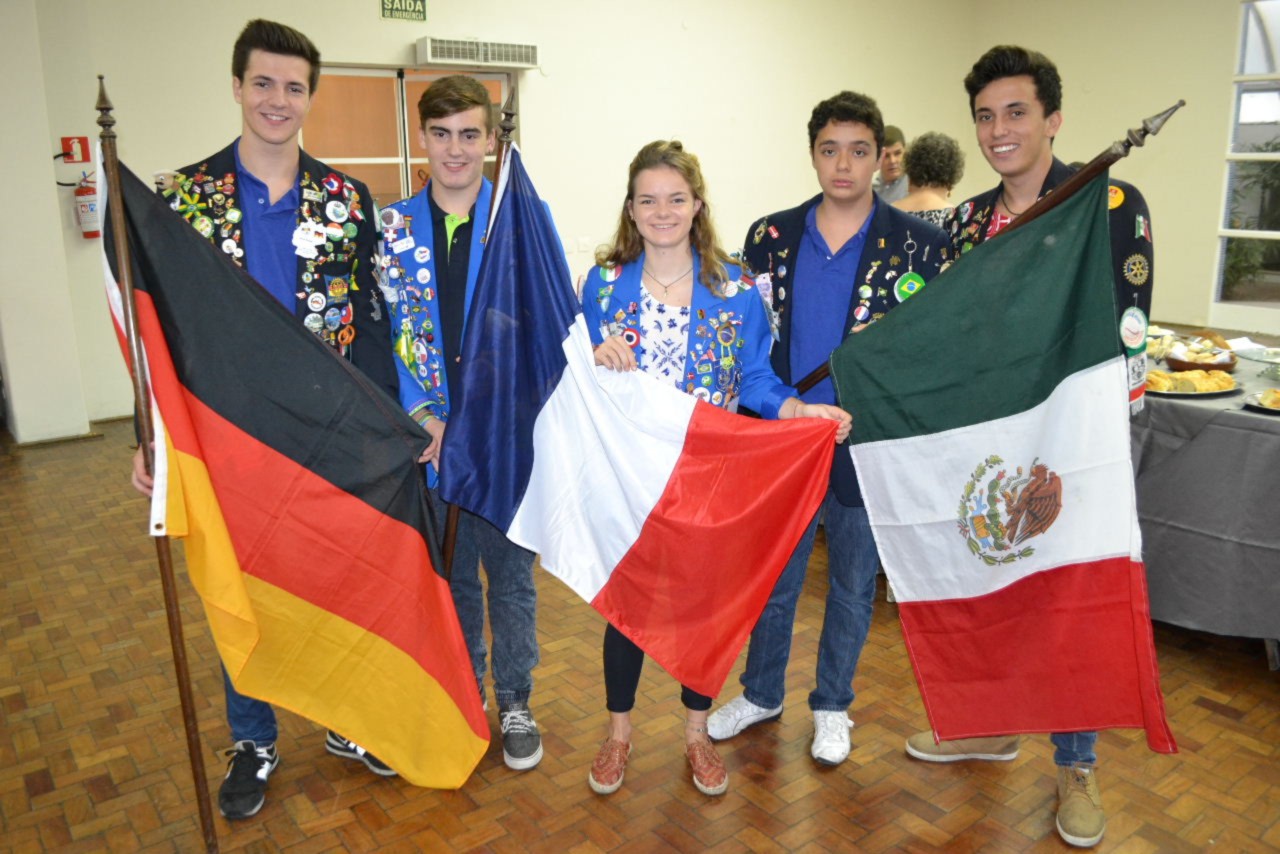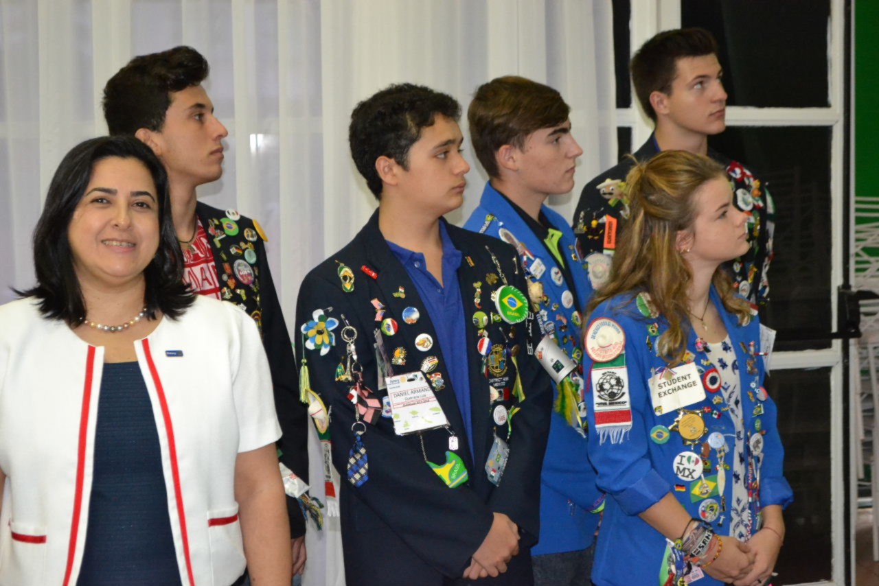 A abertura da reunião se deu com a presença dos intercambistas do clube, Jona, da Alemanha, Florian e Leonie, da França, além de Daniel, do México, que conduziram suas bandeiras, que representaram seus países junto ao Pavilhão Nacional.