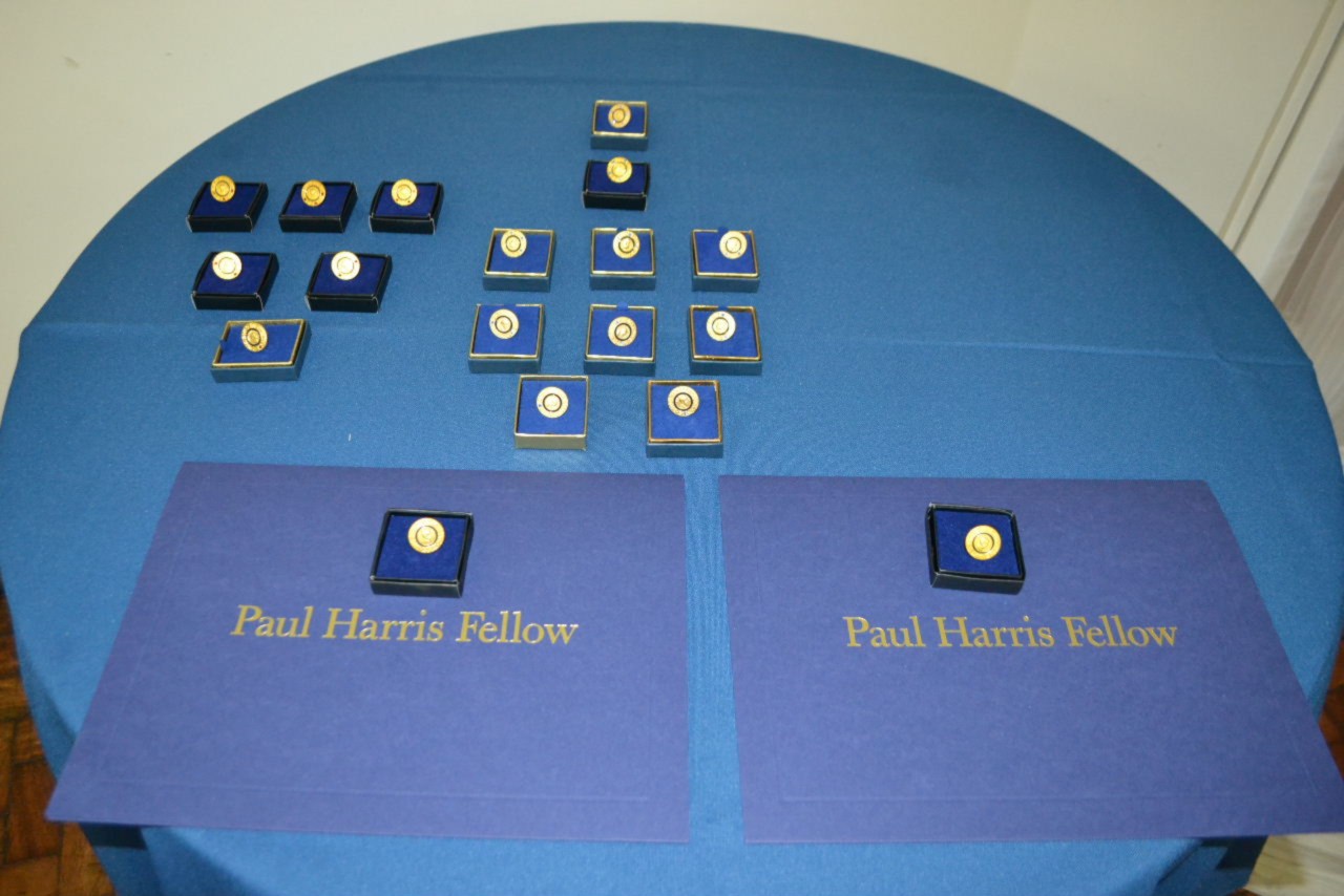 As homenagens não cessaram! Também mereceu destaque a outorga de Títulos Paul Harris aos parceiros do clube, Luiz Antônio de Alvarenga, o Pepino, e Octacílio SantAnna Junior, marido da presidente presente. O companheiro de Rotary e grande apoiador das causas rotárias, João Bernardo Simões recebeu sua 1ª Safira, uma homenagem das rotarianas do clube.