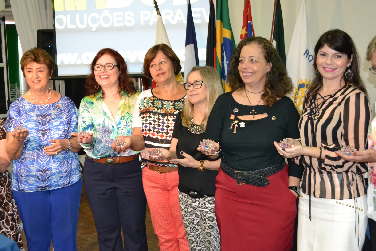 Com os seus Cristais EREY nas mãos, 30 companheiras receberam a honraria que simboliza Todos os Rotarianos, Todos os Anos, uma significativa contribuição para o ano presente. Receberam os Cristais as companheiras: Adela R. Franco, Ana Lúcia V. Augusto, Ana Maria L.S. de Oliveira, Anna S. Silva, Cátia Sperandio, Cláudia F. Valério, Dulcinéia S. Santos, Edna Dguer, Eliane M. Voogelar, Elizabeth C. T. Barbosa, Gelvana Flávio B. Reis, Giselle Cid Perez, Iara C. C. Genovese, Ilza C. Ramos, Isabela de Castro, Lia R. C. Fernandes, Liliane M. L. Destre, Márcia Y. S. Queiroz, Maria da Graça G. de Marcos C. Aulicino, Maria E. Visacrdi, Maria F. Romão, Mariângela F. Veiga, Marília A. Vieira, Melba Nadais Aidar, Rosilma M. Roldan, Rute Maria V. R. Couto, Solange Daud, Valéria F. Garcia, a presidente Rosimeire SantAnna e Viviane B. de Carvalho.