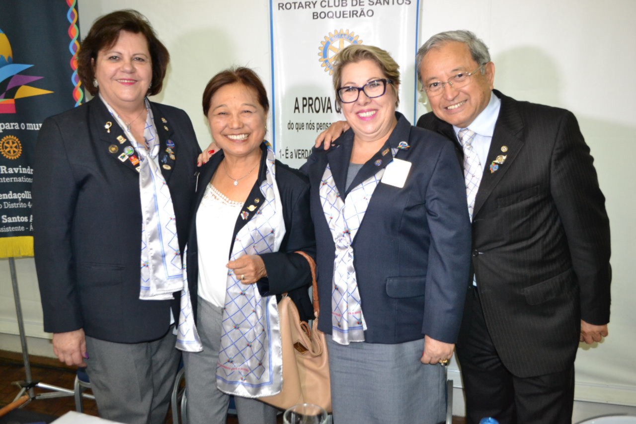 Reunidas para um delicioso café da manhã festivo, as companheiras do Rotary Club de Santos-Boqueirão receberam o casal governador do Distrito 4420, Maria Luíza Mendaçolli Zago e Cláudio, que esteve em Santos-SP, para a Visita Oficial ao clube.