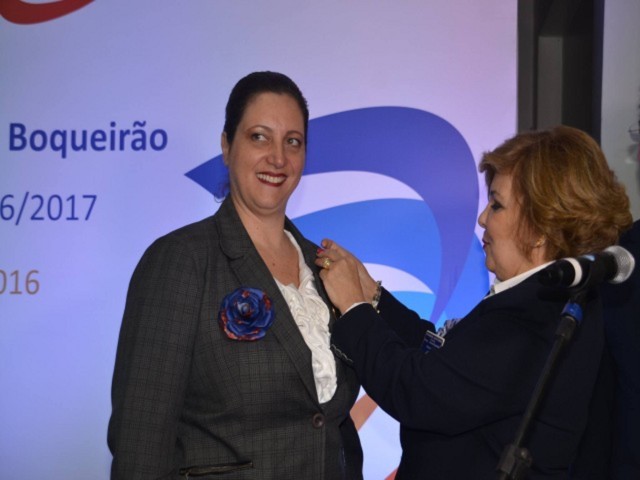 RC Santos-Boqueirão realiza a cerimônia de transmissão e posse no dia 3 de julho. Inovando com uma posse na hora do almoço, sem mesa diretora e breve, foi dado início a mais um ano rotário para o RC Santos- Boqueirão. Apresentou a diretoria e presidentes de comissões, chamando-os todos a frente para receber o pin da gestão. A Presidente empossada homenageou o próprio pai com o Título Paul Harris, agradecendo todo o apoio recebido pela família. A associada Cristina Tóffoli recebeu o título de sócia honorária do clube por tudo que representou desde a fundação.