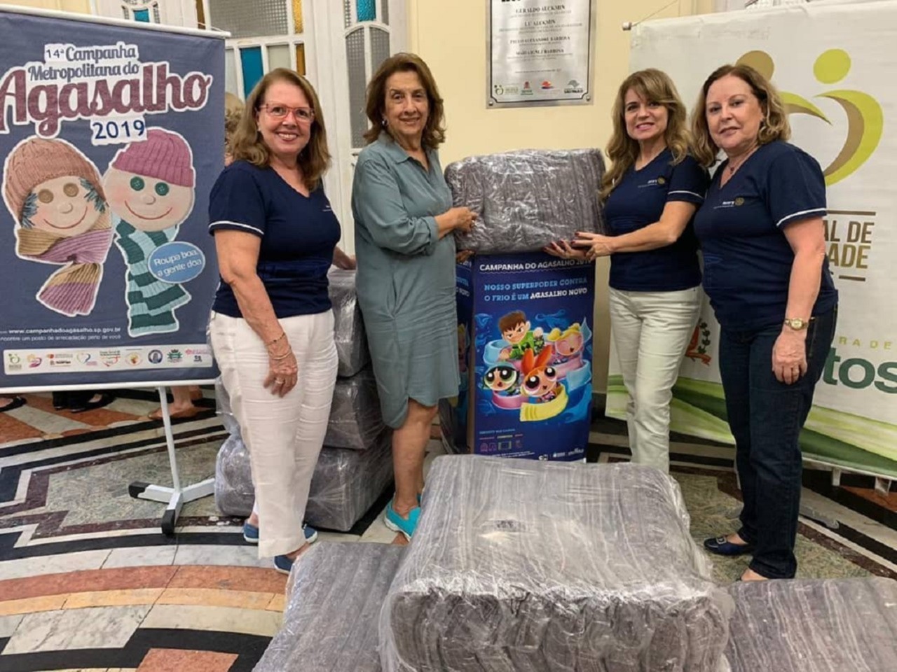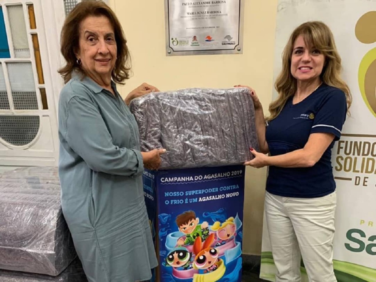 Rotary Club Santos Boqueirão atuando na Campanha do Agasalho/2019: foram doados mais de 200 cobertores ao Fundo Social de Solidariedade de Santos. A Presidente do FSS , Sra. Maria Ignez Pereira Barbosa, presente no recebimento da doação, ficou muito emocionada com a doação.